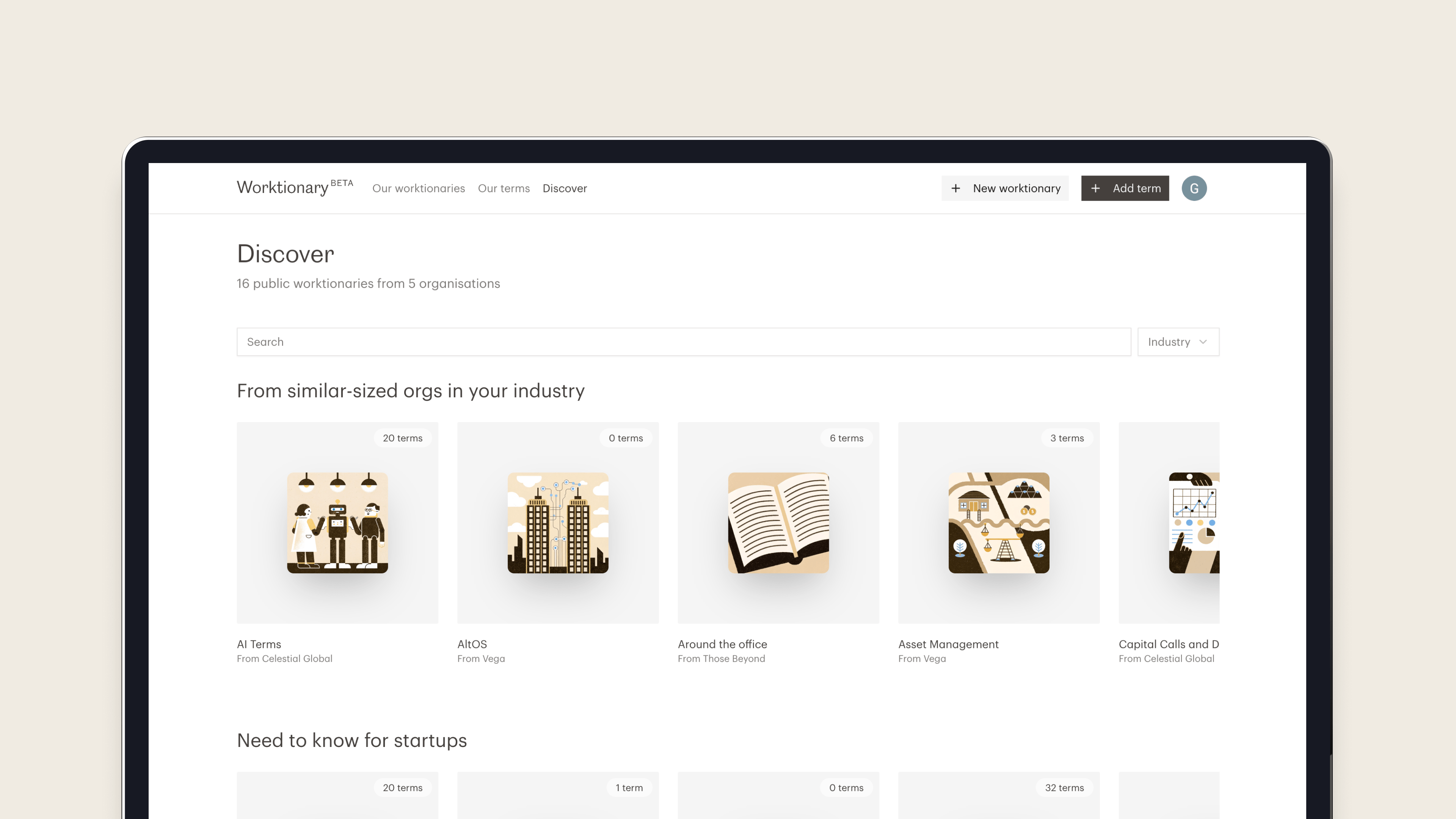 Helping companies get on the same page. Worktionary focuses on portablity of organisation's work terminology and the discoverability of others